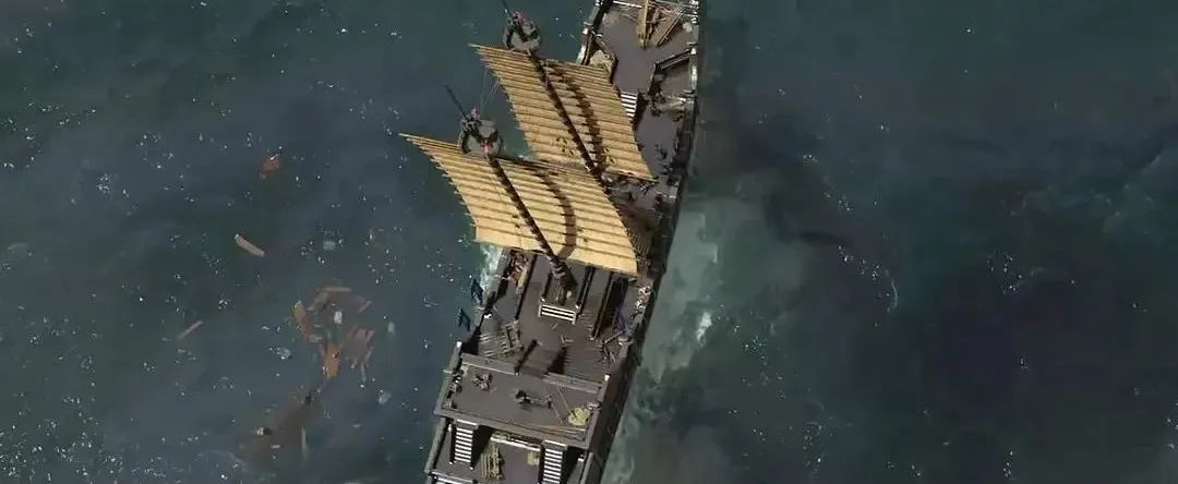 由远及近的船体,在巨浪中翻滚。