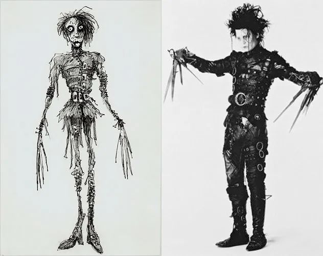 《剪刀手爱德华》角色设计手稿(左)剧照(右)