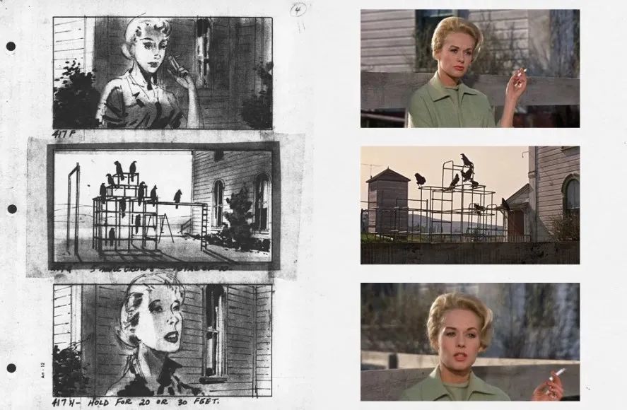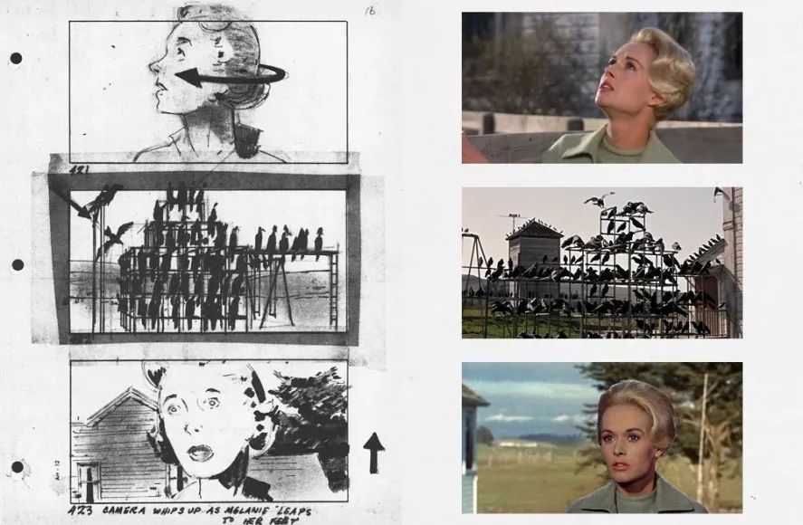 《群鸟》分镜(左)电影剧照(右)