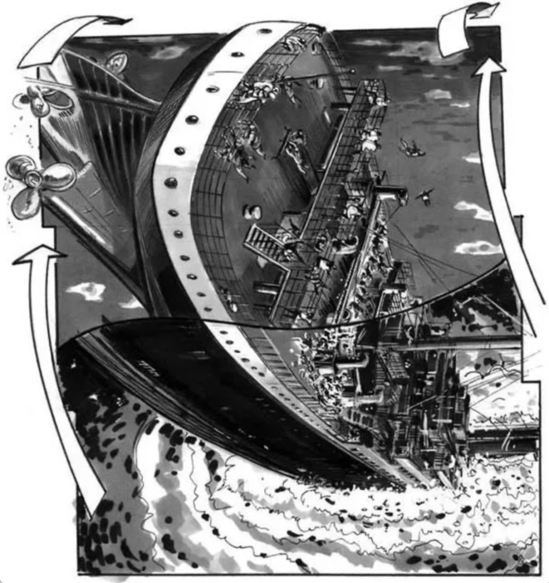 即使是以黑白色彩描绘,也能感受到这艘巨轮的精致。