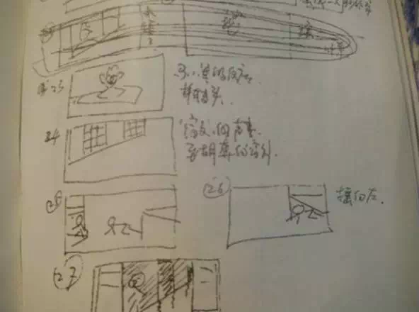 而导演分镜手稿却如同幼儿园时画的火柴人一般潦草。