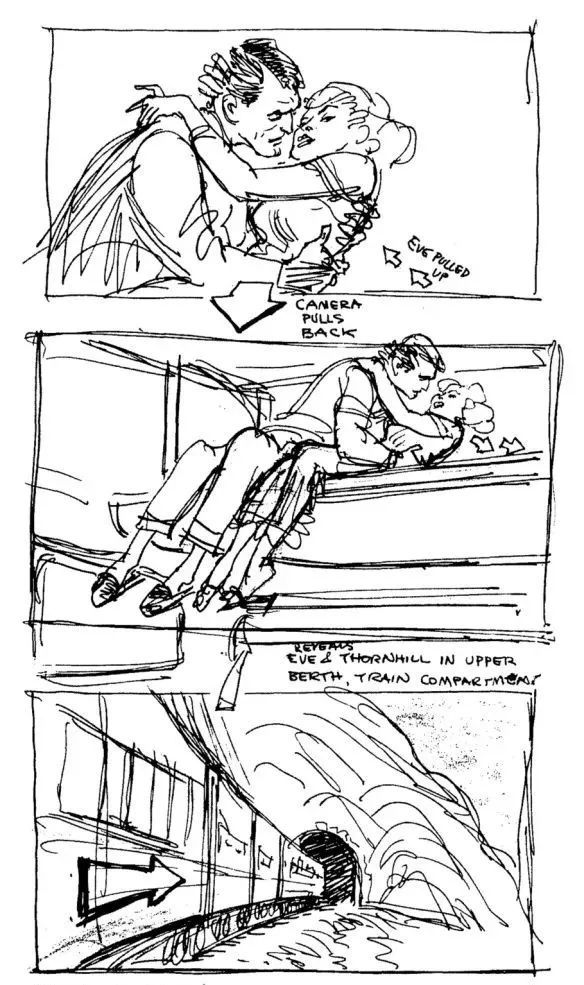 电影《西北偏北》的分镜与剧照,无论是构图还是调度,都让人惊呼:完全一致!