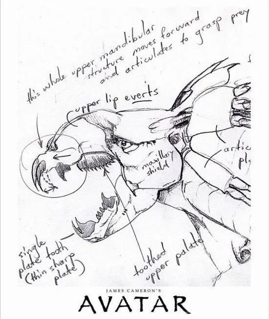 但你不知道更绝的是,导演詹姆斯·卡梅隆画的那鲜为人知的手绘分镜手稿,随着脑海的灵感随手一画,就是大片。