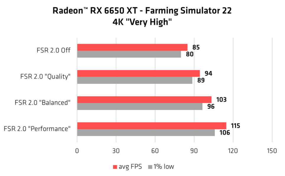 ▼ 在 RX 6650 XT 显卡上开启 FSR 2.0 运行 4K 超高画质《模拟农场 22》游戏