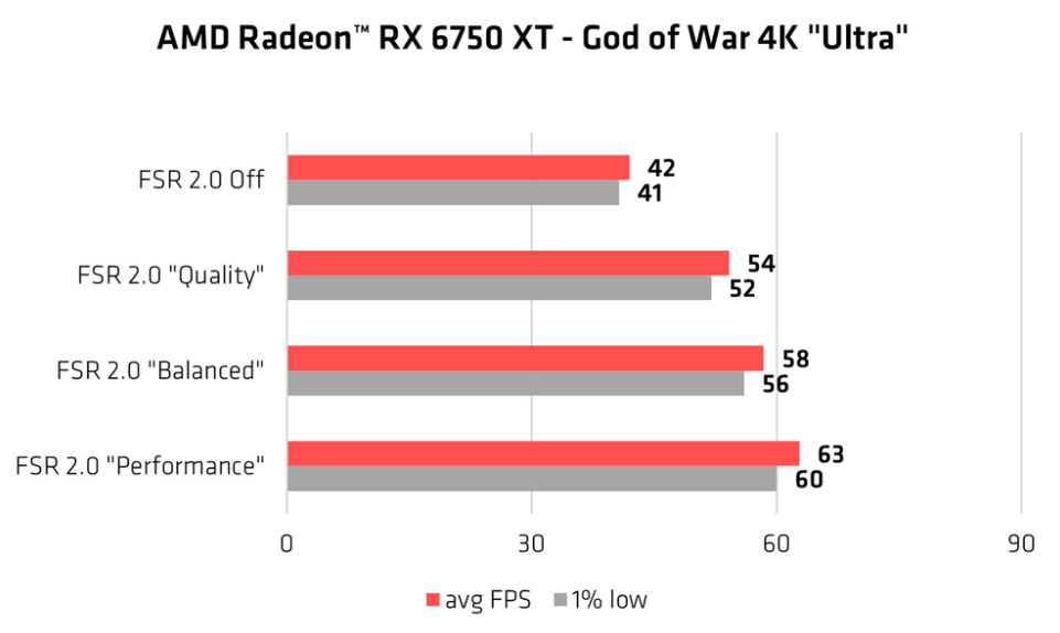 ▼ 在 RX 6750 XT 显卡上开启 FSR 2.0 运行 4K 超高画质《战神》游戏