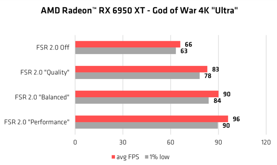 ▼ 在 RX 6950 XT 显卡上开启 FSR 2.0 运行 4K 超高画质《战神》游戏
