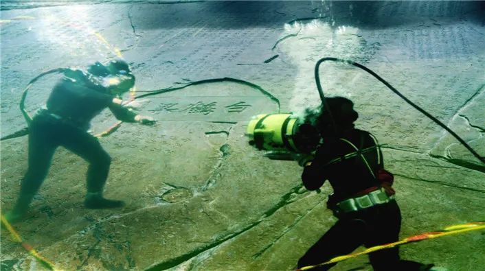 潜水员进行水下作业,清洗题刻(图片来自博物馆官网)
