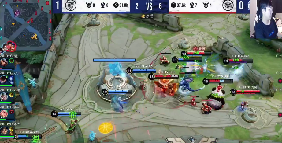 第二场,TTG拿出一手马核体系,前期清清的马超拿到优势,由于DYG除了嬴政之外,其余英雄无法消耗到对手核心输出,在poke方面略微也逊色于沈梦溪。TTG全队开启马核模式疯狂进攻,DYG小义只能多次找机会抓孙尚香。此时比赛进行到11分钟,北笙表示就看DYG能不能撑到16分钟,撑到就有机会,目前经济差4000还可以,马核这种双边核8-12分钟是强势期,正常情况下是挡不住的,所以看下有没有后续吧。从他这里可以感觉到DYG这场很难,虽然随后一波完美联动抓了对面马超,但还是挡不住三路龙兵最终被TTG追平一分。