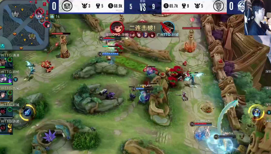 果然双方在6分钟前非常稳健,没有爆发一血,而在6分钟后TTG九尾的奕星大招控住吕布,而吕布跳大想逃走可惜没能出框,不仅人没跑掉人还浪费大招,人依旧被抓。TTG眼看对方没有反手能力,顺势进攻打了一波0换3。借着这一波优势,TTG顺势推掉中塔拿下野区,在11分钟推下水晶。弹幕表示TTG这把让鲁班直接守线了,不参团自然不怕被抓。