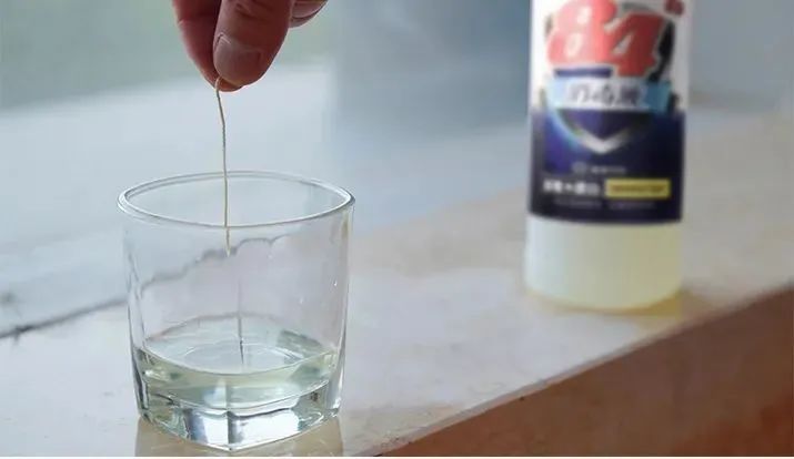 用84消毒液泡—蚕丝在84消毒液里面泡一会就会溶解消失不见。而仿丝的材质无论泡多久都不会消失。