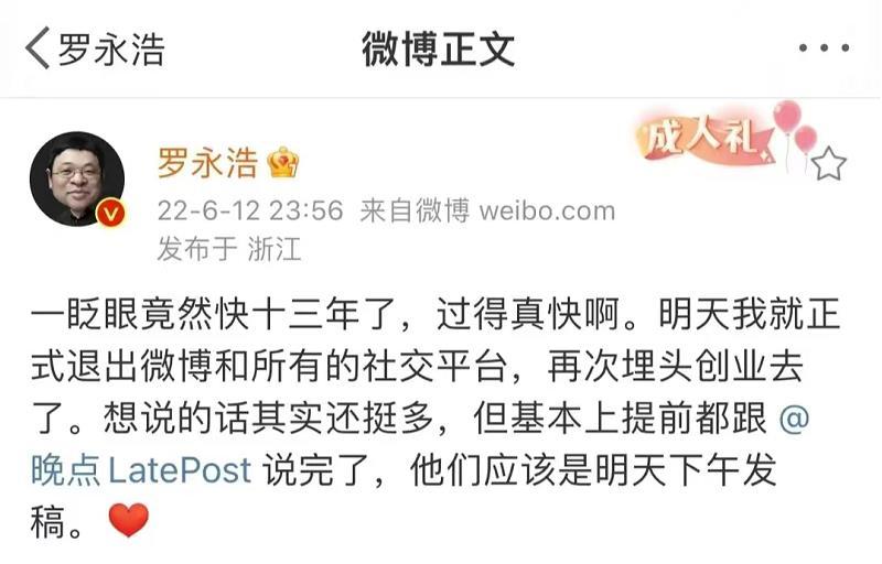 但就在6月12日,老罗官宣正式退出微博和所有社交平台,再次埋头创业去了。这也意味着,以后罗永浩的身影也将淡出直播间,由一名“网红带货主播”重新变成“企业家”,那个怼天怼地怼空气的老罗真的要“回来了”。