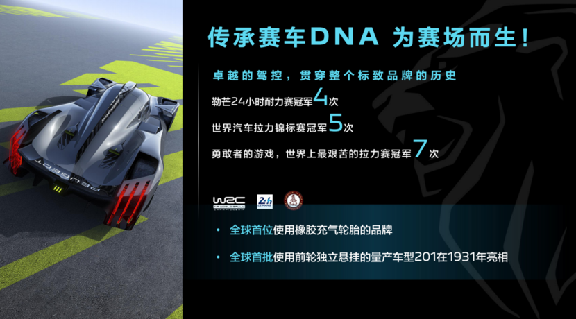 对于汽车大厂来说,销量只能证明热度,赛事才能证明实力,这也是为什么各种豪门大厂都追求向往各大赛事的原因。而标致作为法系车的代表,一直以来也是各大赛事常客。不管是拉力赛、耐力赛还是越野赛、场地赛,标致都有着扎实的功底。在标致的里程碑中,曾拿下世界首届汽车比赛巴黎-波尔多折返赛冠军,在残酷的勒芒24小时耐力赛上也豪取冠军4次、世界汽车拉力锦标赛冠军5次,在被号称勇敢者的游戏里,标致同样拿下了被誉为世界上最艰苦的拉力赛冠军7次。同时标致还是全球首家使用橡胶充气轮胎和首家使用前轮独立悬挂的车企品牌,可以说标致象征的不仅是实力,还有勇于开拓的精神。