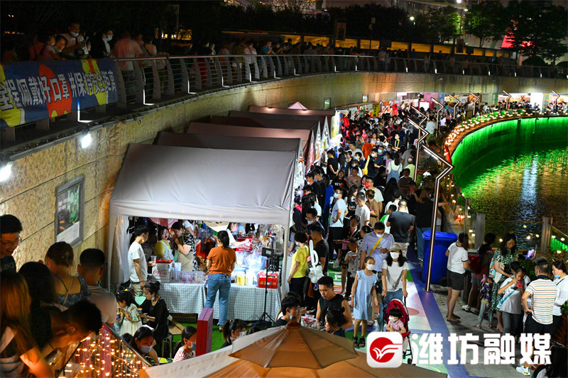 聚拢一方人间烟火,同时以公益性摊位为小微商户纾难解困。漫步“万物集”夜市,可见游客文明有序、商户摊位整齐划一、商品质优有品位,凤溪地滨河步行街成为展示潍坊形象的窗口。