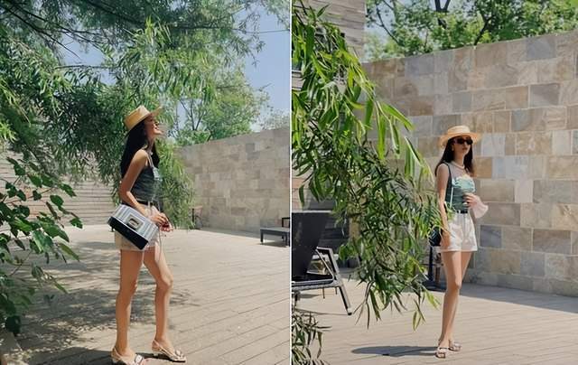 近段时间以来,杨采钰晒出的穿搭都好评不断,不久前她曾晒出过一套十分具有夏日气息的清凉装扮。照片中杨采钰选择了一件绿色吊带,搭配同色系的背包,下半身则是一件白色短裤,再配上草帽和墨镜,看起来度假感十足。