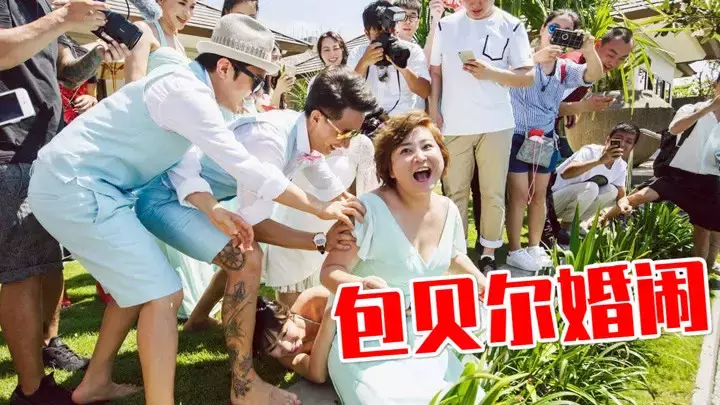 穿着性感的柳岩,正被一众男星连拽带拖,企图制造一场“湿身诱惑”。