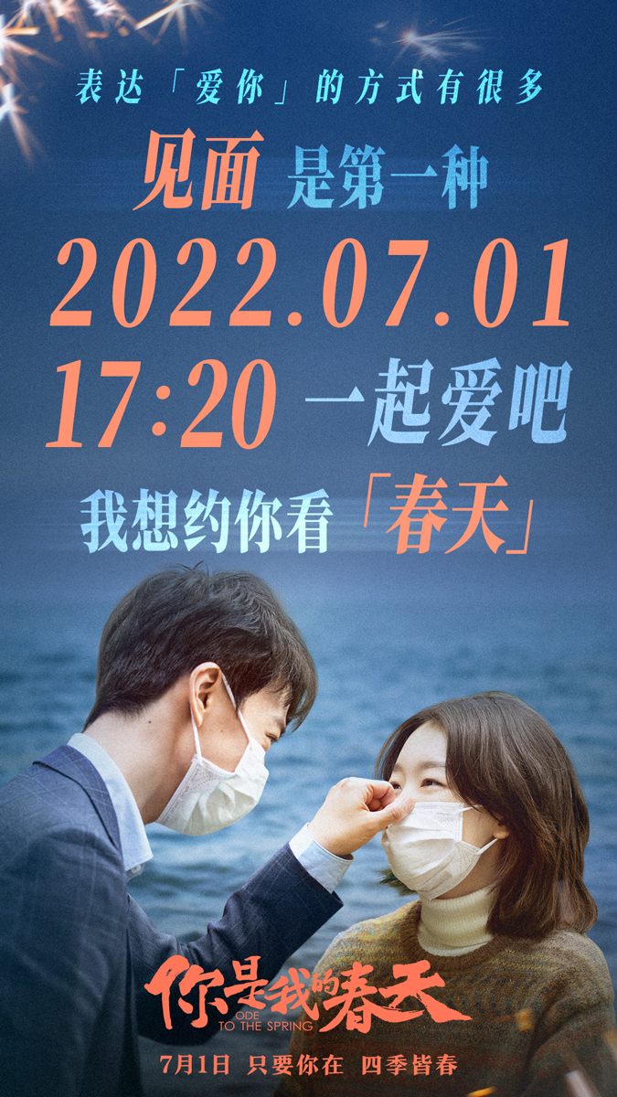 而对于银幕外的观众而言,经历了一次不平凡的春天后,下半年的第一天17时20分这个特殊节点,与最重要的人来影院,以一场名为“春天”的电影开启元气满满的下半年,又何尝不是一种浪漫的约定呢?“我想见你”,不仅仅意味着“我”在思念“你”,更代表着我想要和“你”奔赴每个充满希望的日子。7月1日,就把见面、看星光、享受烛光晚餐……这些约定通通实现吧!