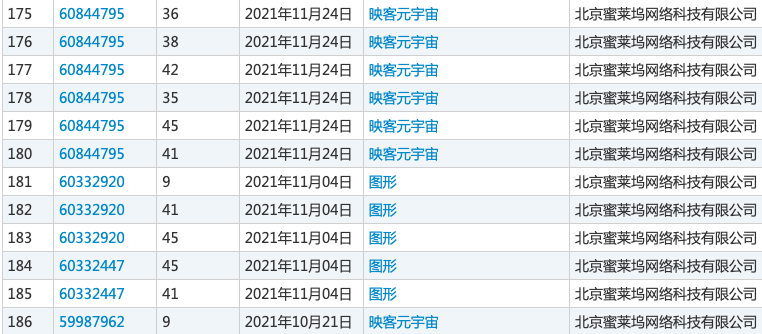 图:映客申请注册元宇宙系列商标