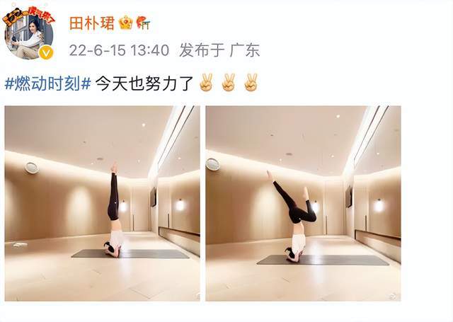 近日,“王的女人”田朴珺在社交平台上晒出一组难度系数极大的健身照片,并配文“今天也努力了”。