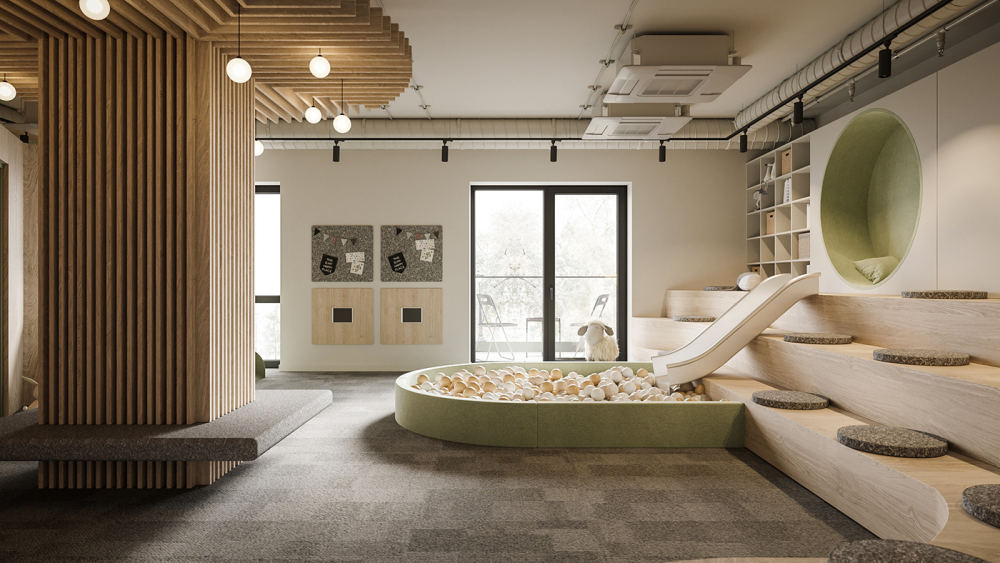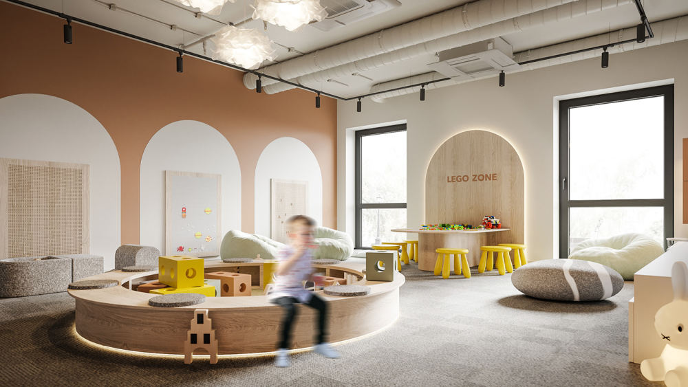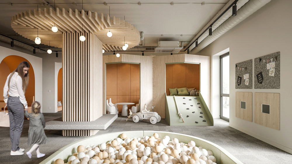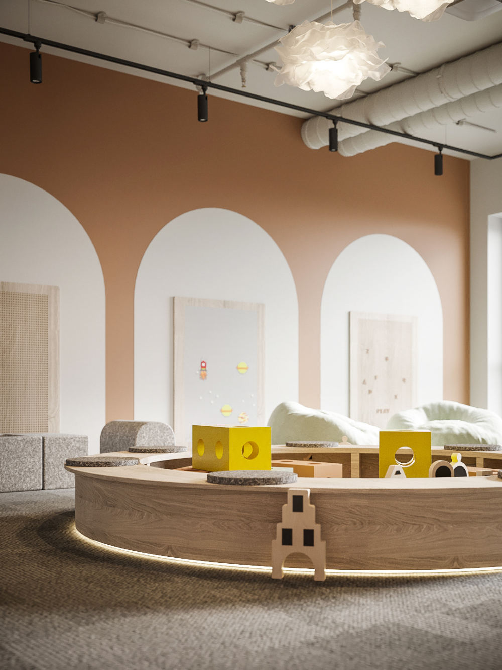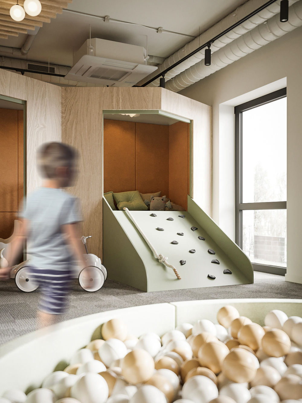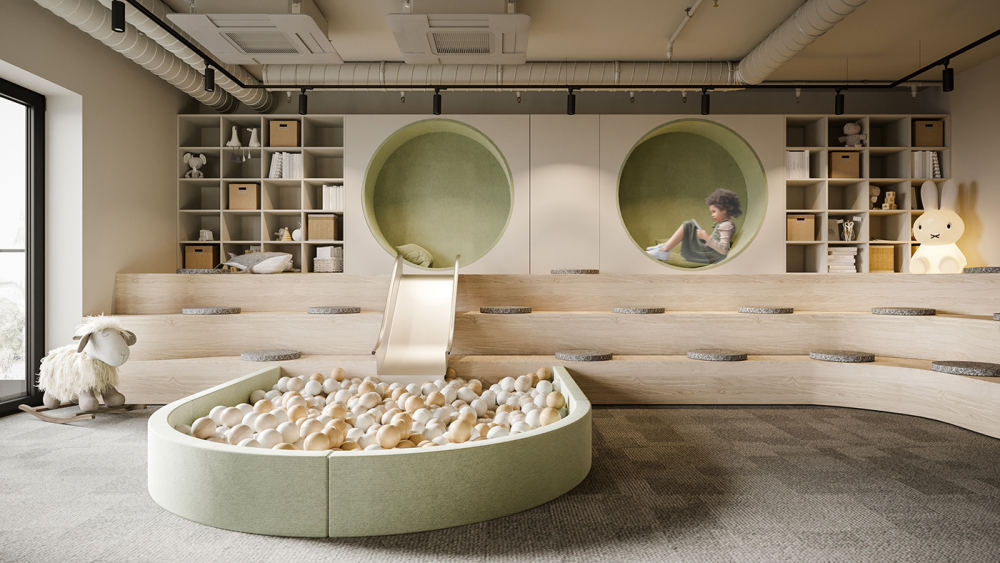 适应儿童身高的多种游戏设施的组合,为儿童在室内的游戏创造了大量的机会。