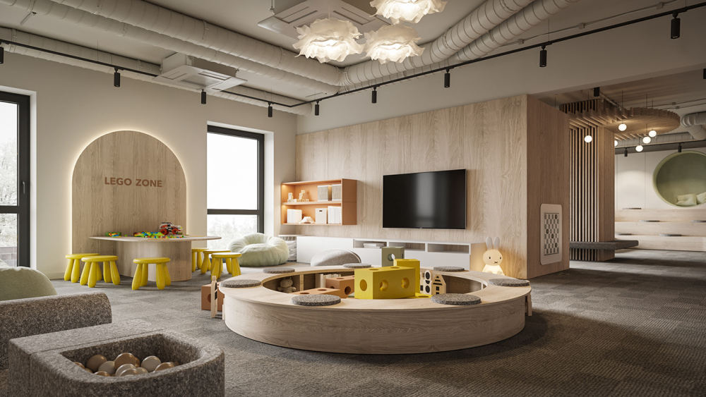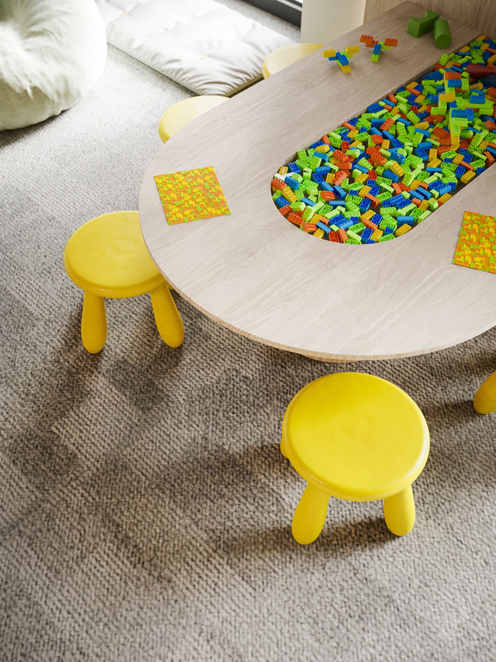 2 号游戏室则带有可玩乐高和大型积木的区域。