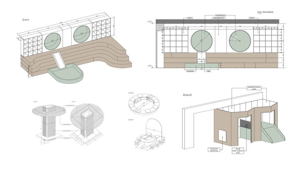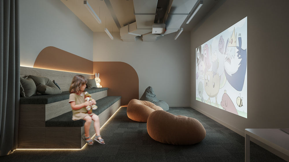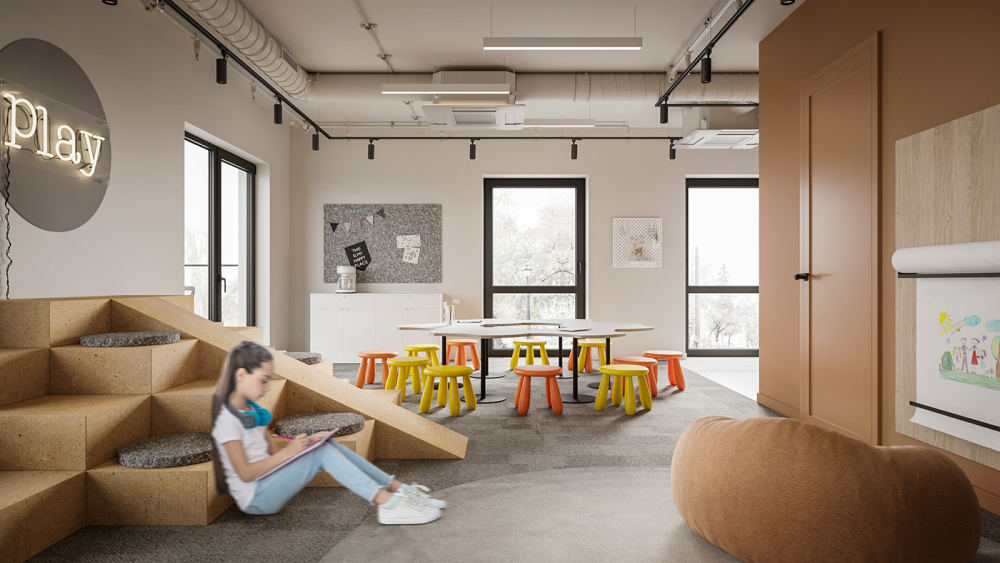 儿童中心分为四个重点区域:1号游戏室、2号游戏室、亲子中心以及放映室。所有家具均在爱沙尼亚本地制造。大部分购买的家具,如椅子和桌子都来自某连锁家居企业。