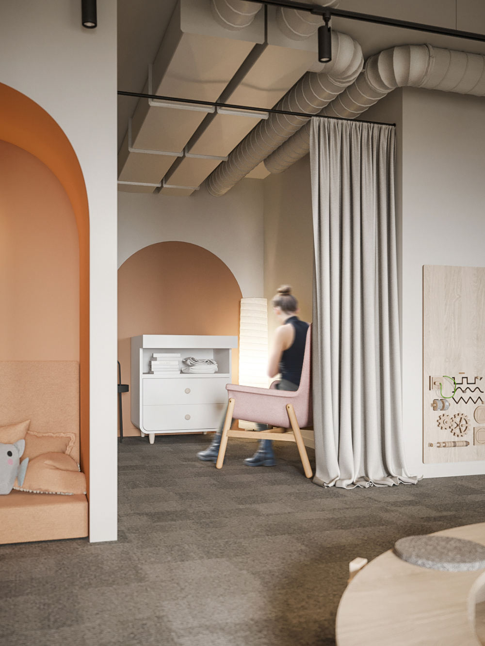 2号游戏室对面则是儿童中心的哺乳室,便于哺乳的女性使用。