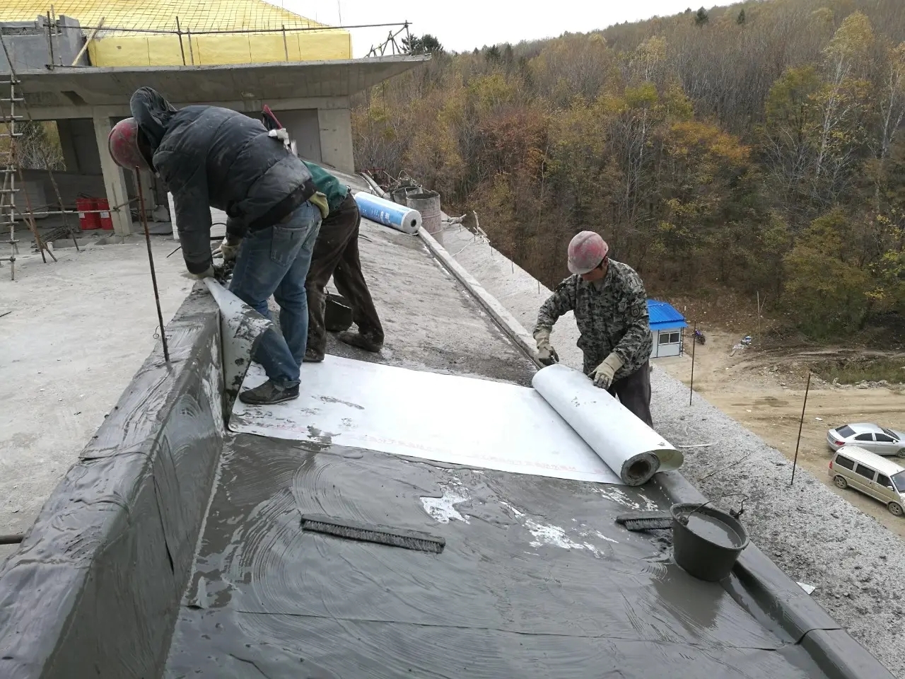 4、丙纶防水膜与底座形成整体的防水结构,丙纶防水膜可以在雨天施工,确保工程的进度。