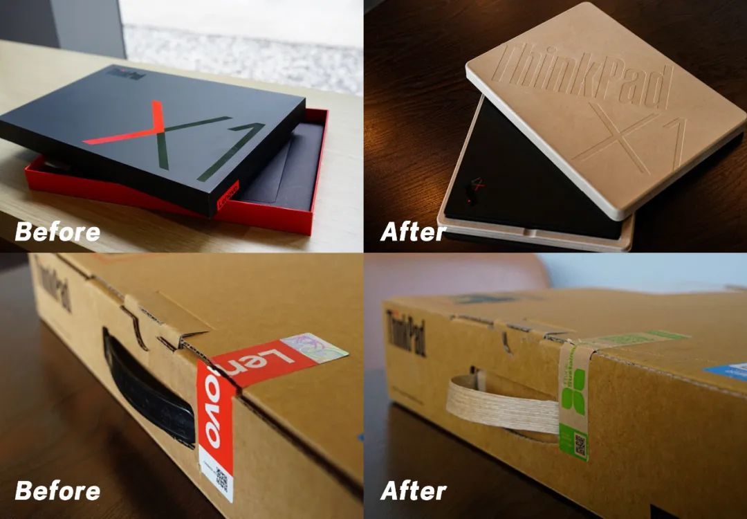 ThinkPad“简单包装”前后对比:减少印刷油墨、循环材料代替塑料提手