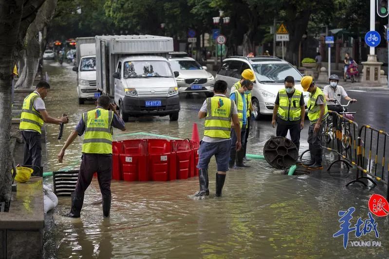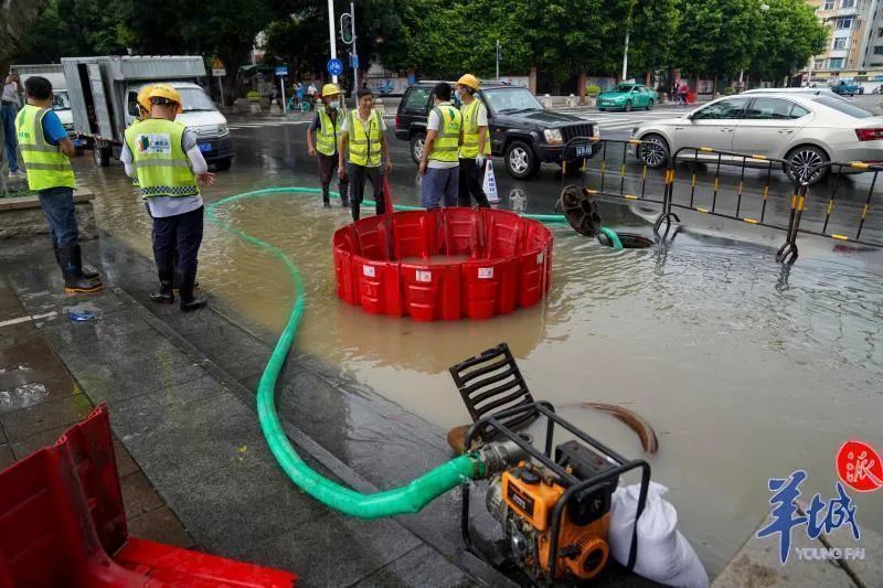 在沿江路海珠广场路段,记者看到有水从路边排水口倒灌。该处的沿江路行车线受水浸影响,机动车需要小心通过。交警、排水、城管等工作人员在现场,保障车辆和行人的通行安全。