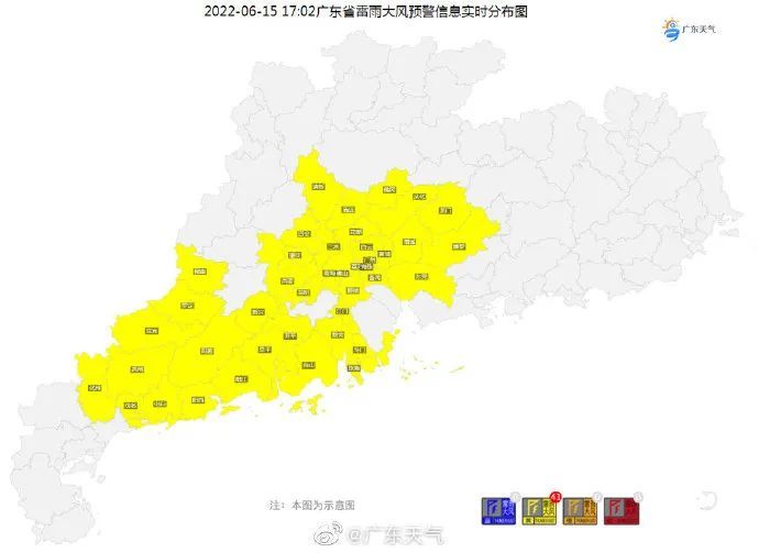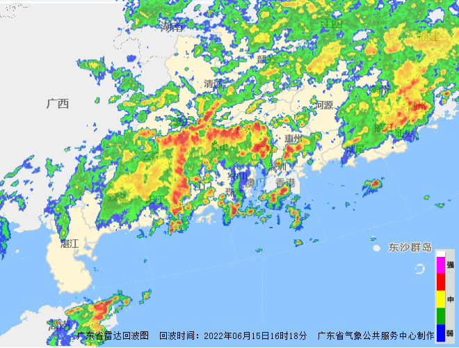 预计15日,粤北、珠江三角洲市县有大雨到暴雨、局部大暴雨,其余市县有中雨、局部暴雨。16日-17日,粤北、珠江三角洲市县有暴雨、局部大暴雨,其余市县有中到大雨、局部暴雨。展望18日-21日,中北部市县仍有强降水。