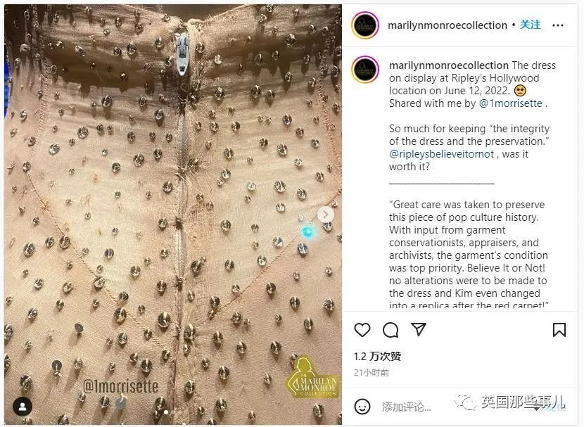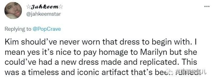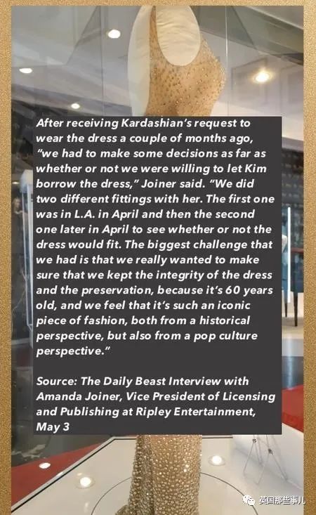 丧尸奶猫:这件衣服设计师为梦露纯手工量身打造,它的尺寸就是梦露的曲线,更别说它意义非凡了……现在一搜这条裙子一堆卡戴珊的照片我是觉得挺辣眼睛
