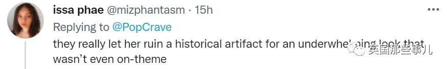 (PS:今年Met Gala的主题是“镀金魅力”,希望嘉宾们体现镀金时代纽约的繁华,而镀金时代是指1870-1890年,玛丽莲·梦露的礼服是1962年的,所以网友才会说它不切题。)