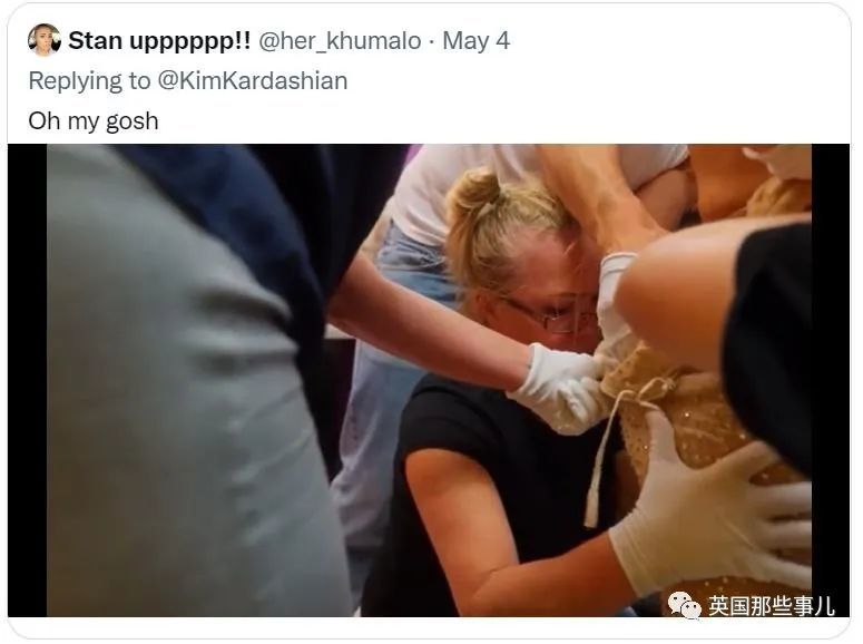 (网上有一段金姐试穿礼服的视频,靠好几个工作人员帮忙才穿进去,拉链还差很多拉不上,貌似是减肥前的效果?)