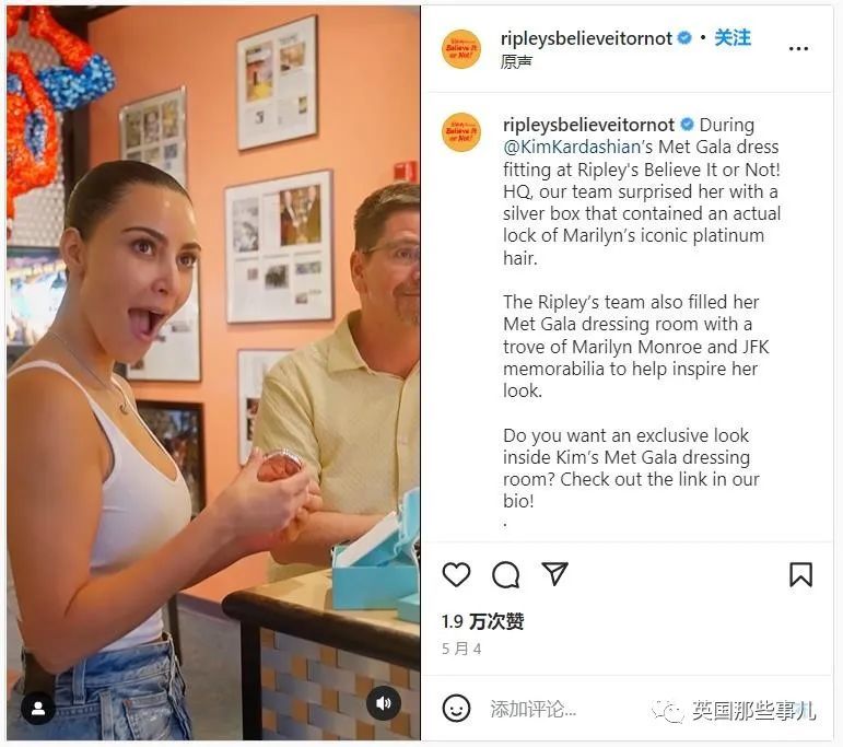 The Marilyn Monroe Collection在一篇帖子里@了“信不信由你”博物馆的官方账号,