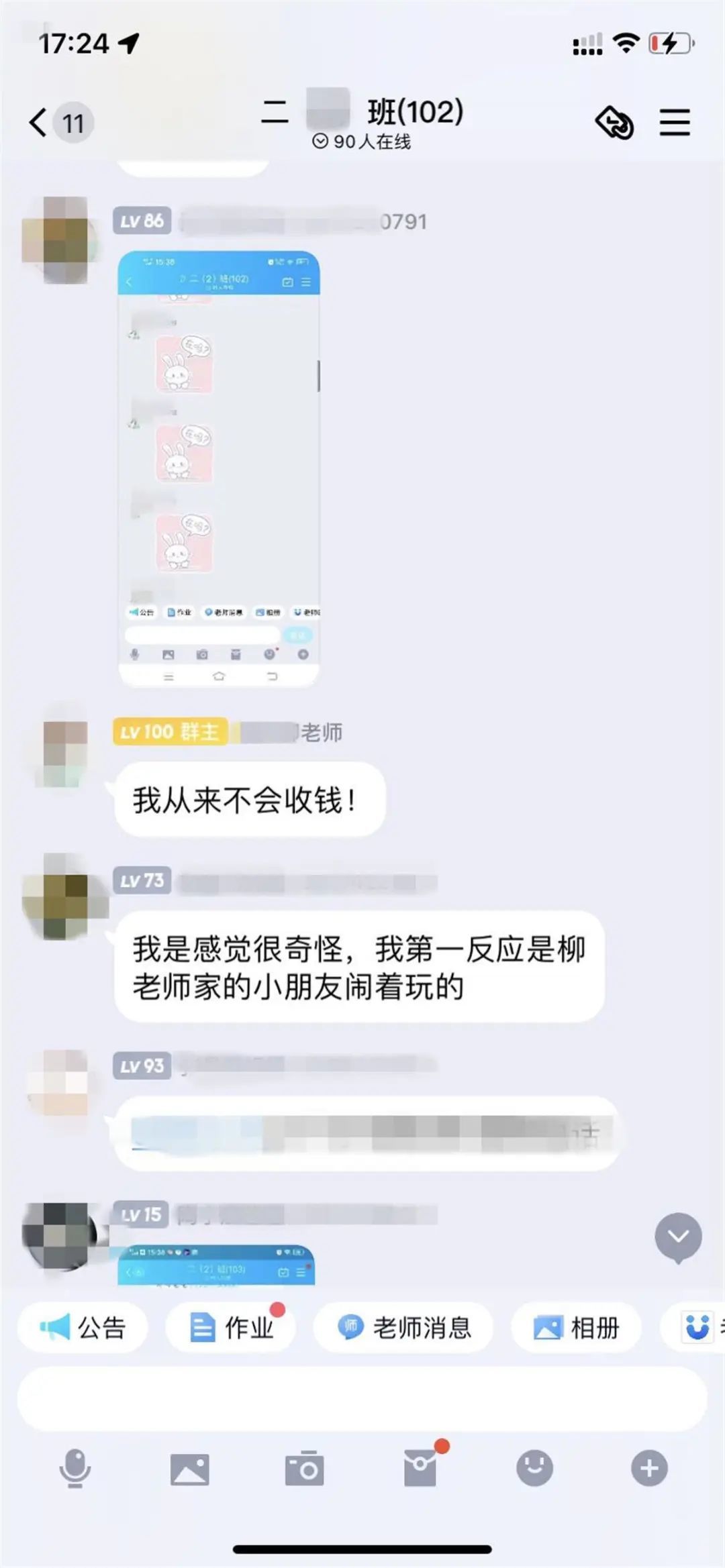 “我看到消息时有些疑惑,没有立即扫码缴费。”李女士说,看到有家长陆陆续续缴费,她也慢慢相信确有其事,最后她也扫了“老师”发来的收款二维码。可没过多久,语文老师又在群里发消息,说没有收钱一事,提醒家长不要继续转账付款。 当天,有14名家长扫码转账,总金额3976元。