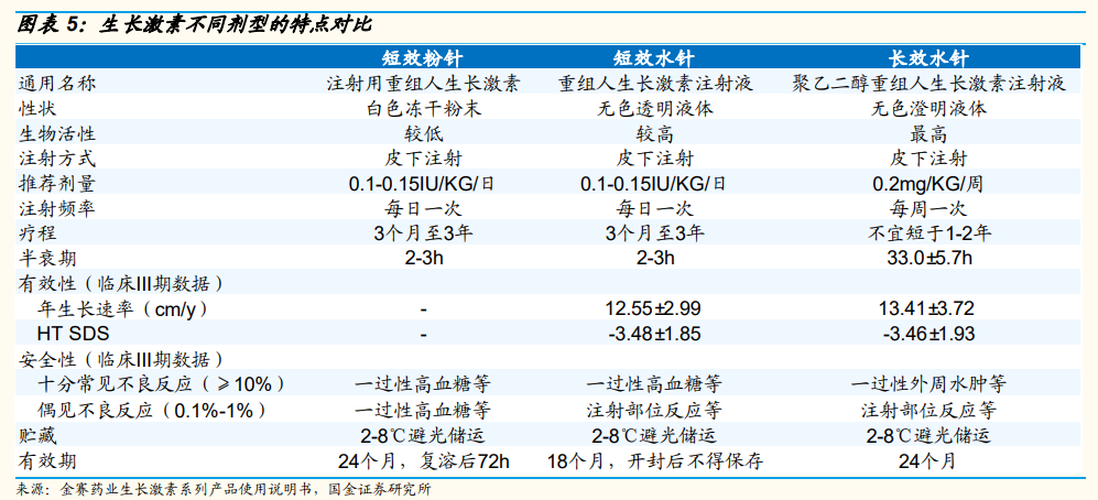 目前,国内市场主要重组生长激素产品包括短效生长激素粉针剂、短效生长激素水针剂和长效水针生长激素等。