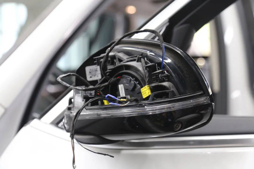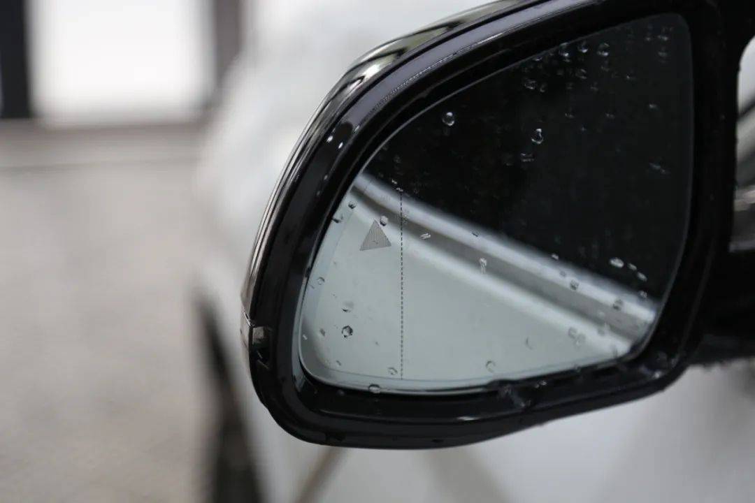 这台车还升级了盲点辅助,升级后的后视镜镜片上多了一个三角形,当后方来车的时候就会提醒你,提高驾驶安全。