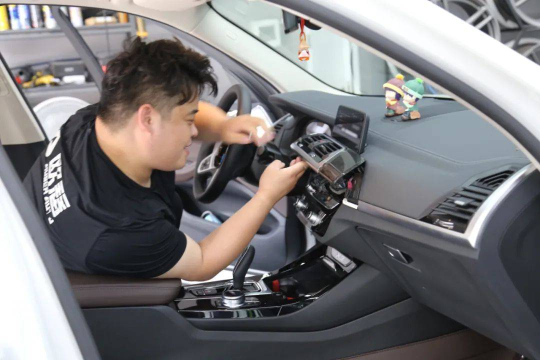 今天的改装主角是一部宝马X3改装项目包括:前排座椅通风+方向盘加热+盲点检测+红色卡钳罩+座椅皮子打孔+水晶档把+牛角后视镜。