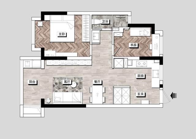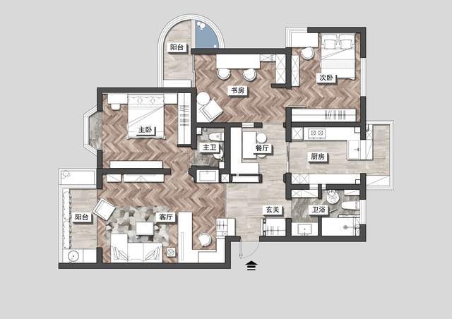 必备线路6路:总开、照明、普通插座、厨房插座、主卧卫生间插座、公共卫生间插座