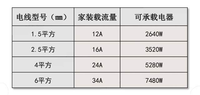 对于1.5平方的电线回路,满载流量12A的情况下,可以带动12*220=2640W的功率