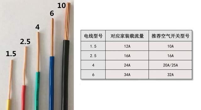 一般家用电线有1.5平方、2.5平方、4平方、6平方,而10平方的比较少见,仅用于入户线。一般的电线管选择的是φ20mm的pvc线管,穿线时电线不能超过线管横截面积的40%。所以,空开的选择要根据线路的荷载电流来选择: