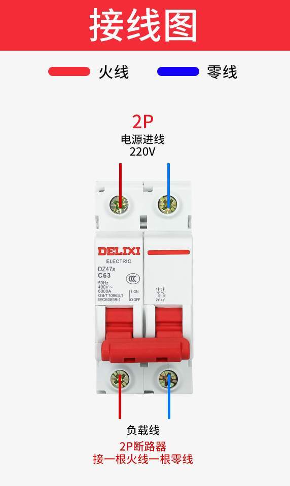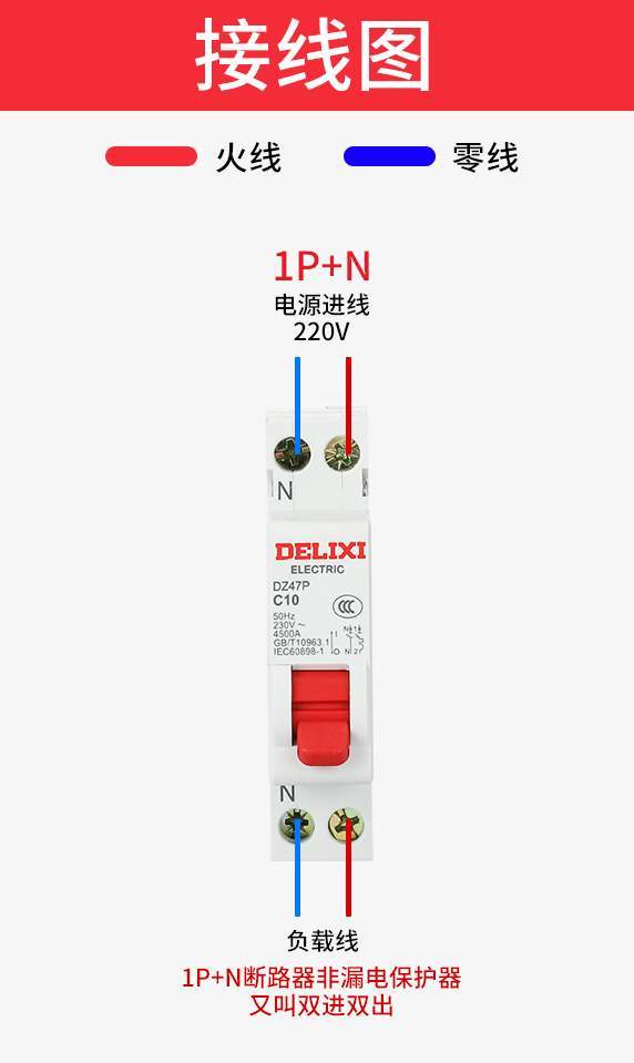占据1位,双进双出,接火线和零线。其中零线直进直出,没有开关分断,只能对火线进行检测,当火线断开的时候,零线也会随之断开。但是当零线发生过载或短路,断路器不会跳闸。所以,1P+N相当于1P的一个简单升级版,也是常用于灯线和普通插座。