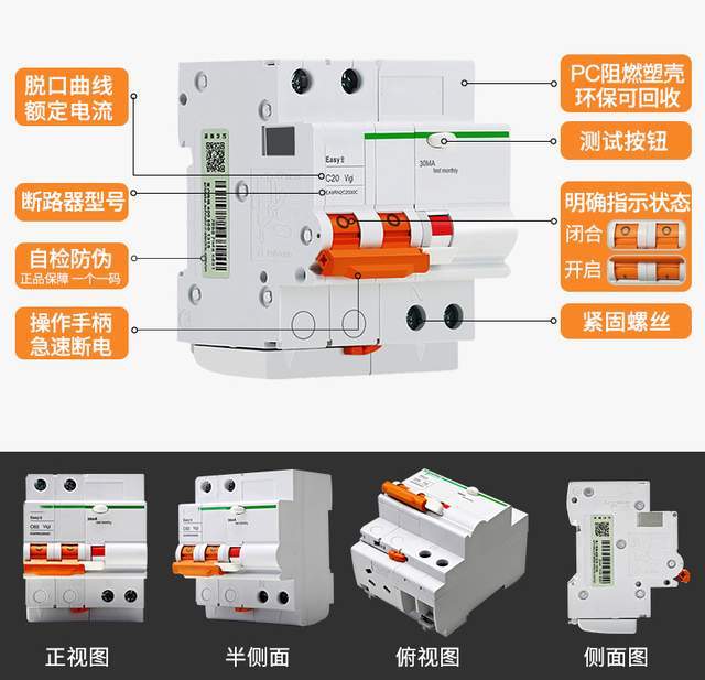 漏电保护器简称漏保,实际上指的是带漏电保护装置的空气开关,当漏电或者人体触电,电流超过30毫安时,漏电附件就能自动跳闸,可以确保人身安全。需要搭配空气开关使用,占位1-2位。