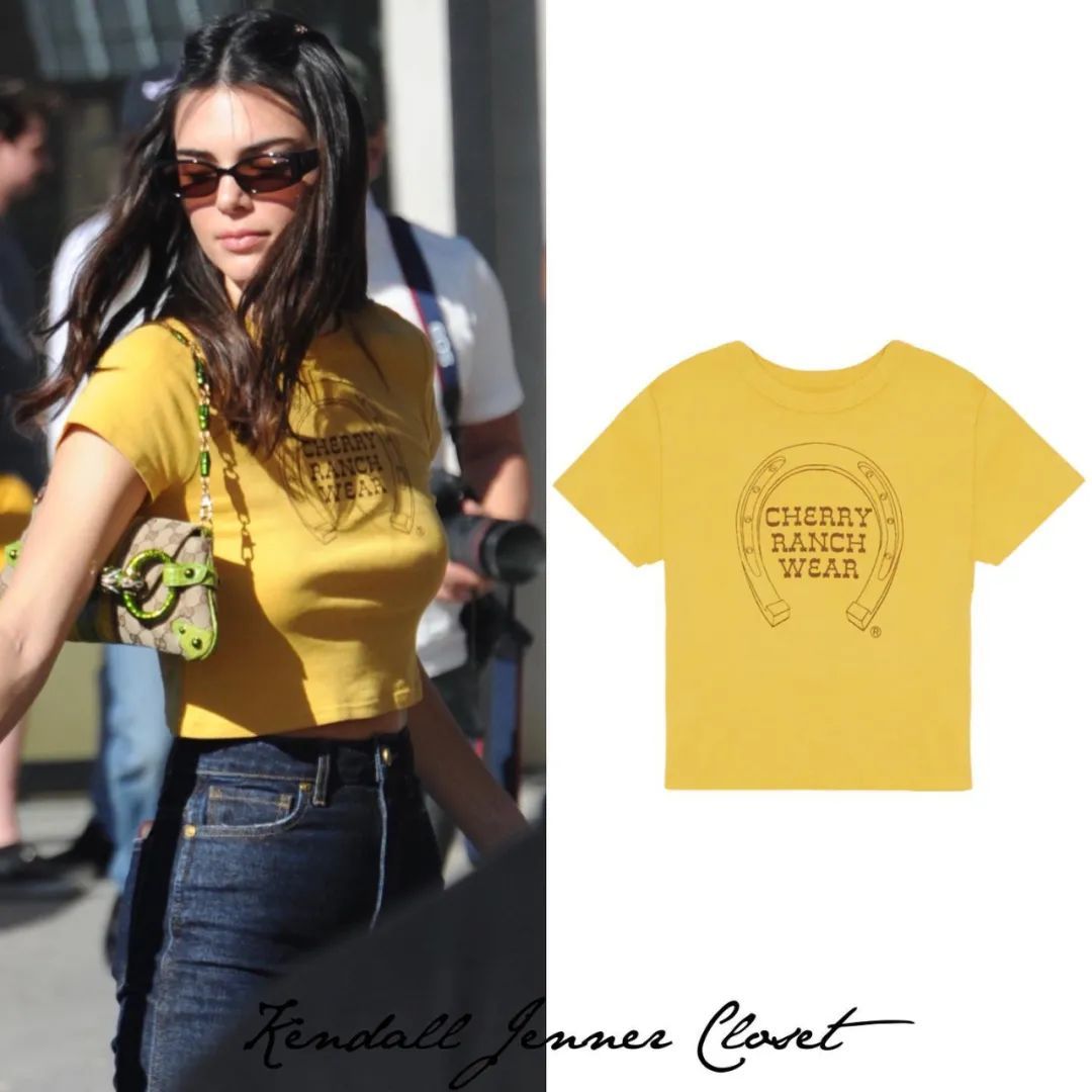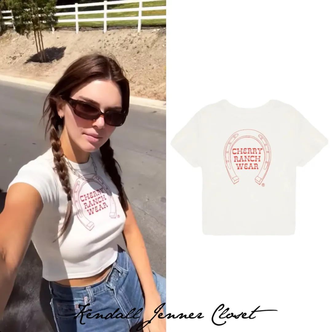 一连两天穿上 Cherry LA 的 Baby Tee,可见 Kendall 喜爱程度。