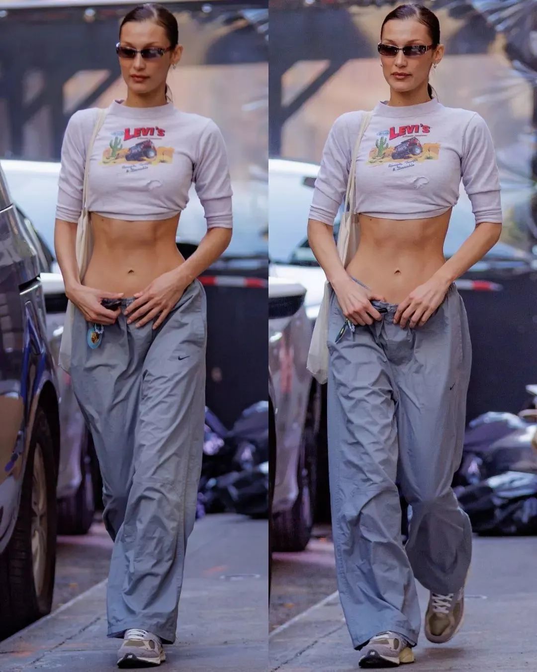 "美式复古" 首当其冲,「高腰工装裤+小版型紧身上衣」的公式搭配成为今夏辣妹新欢;在参加 Coachella 时,Bella 就送上精彩示范。