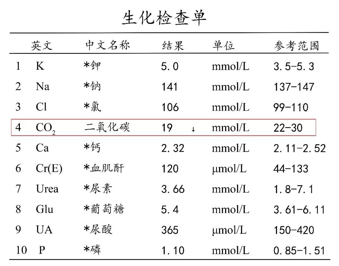 注:二氧化碳如只是偶尔一次低,需复查,排除检验误差