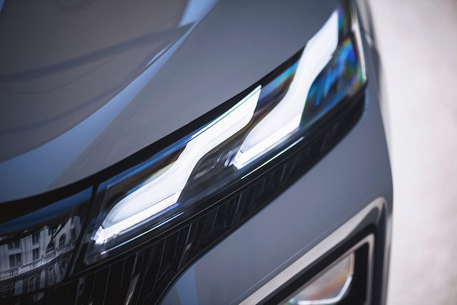 黑色直瀑式的中网设计可以说是它前脸上最为夸张的地方,它几乎占据了整个车头80%以上的面积,而如此大的尺寸一下就给它营造出了很强的气势,再加上中网上方的贯穿式LED灯带和两侧狭长的LED日间行车灯,让它的前脸很具时代感。
