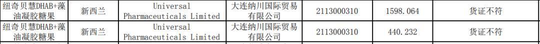 比如产品标签大都是外文、DHA浓度不统一。在2021年10月未准入境食品中,纽奇贝慧DHAB+藻油凝胶糖果因货证不符,未批准入境;由美国进口的一批澳罗欣鱼油软胶囊,因标签不合格,未批准入境。