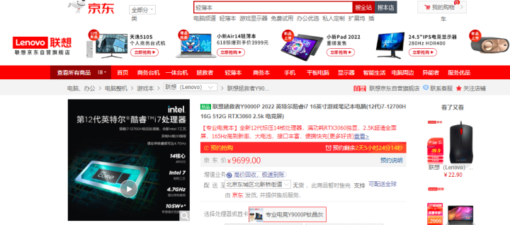 其中,联想拯救者Y9000P 2022款采用12代标压14核处理器,配备16英寸2.5K分辨率165Hz高刷显示屏、采用RTX3060显卡,京东6月17日晚8点到手价8999元。联想小新Pro 14标压锐龙版,采用锐龙5000系列标压处理器,让整台笔记本的性能更加强劲,响应更加迅速,京东6月17日晚8点秒杀价3999元。