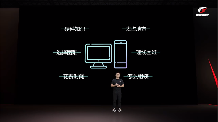 对于一些缺少硬件基础的游戏玩家们来说,传统DIY思维需进行的繁杂选择,付出相当多的时间成本;哪怕是组装好的电脑主机,各种杂乱的连接线材也占据着我们有限的桌面空间。
